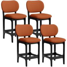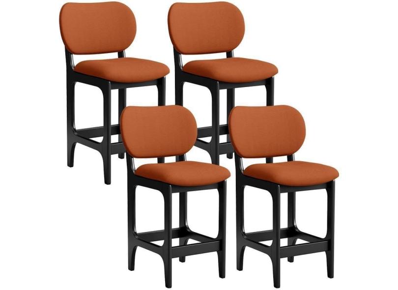 Kit 04 Banquetas Baixa Bar Cozinha E Sala Dejantar Fixa Betta Preto Tecido Terracota
