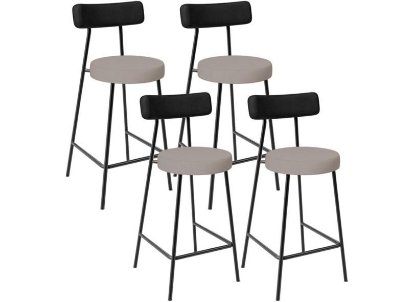 Kit 04 Banquetas Baixa Bar Cozinha Sala Jantar Milão L02 Couríssimo Preto Linho Bege - Lyam Decor