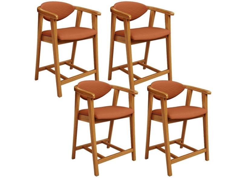 Kit 04 Banquetas Baixa Cozinha Bancada Cecília L02 Tecido Terracota