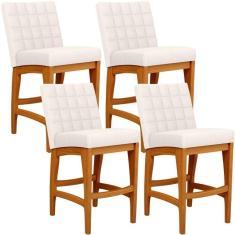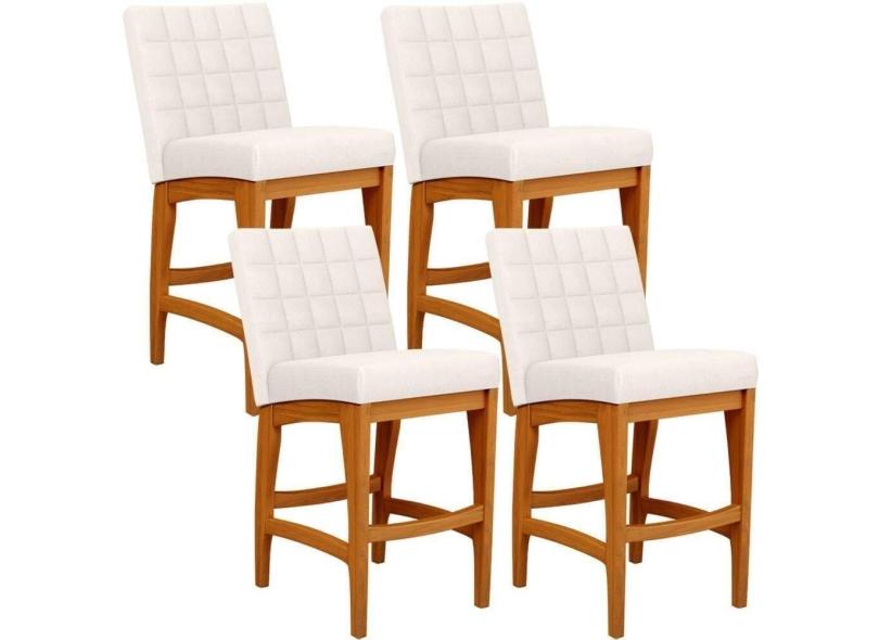 Kit 04 Banquetas Baixa Cozinha Bancada L02 Cru