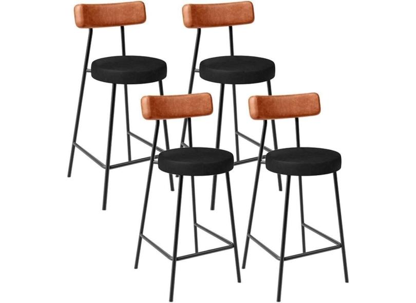 Kit 04 Banquetas Baixa Cozinha Sala Jantar Bancada Milão L02 Couríssimo Camel Preto