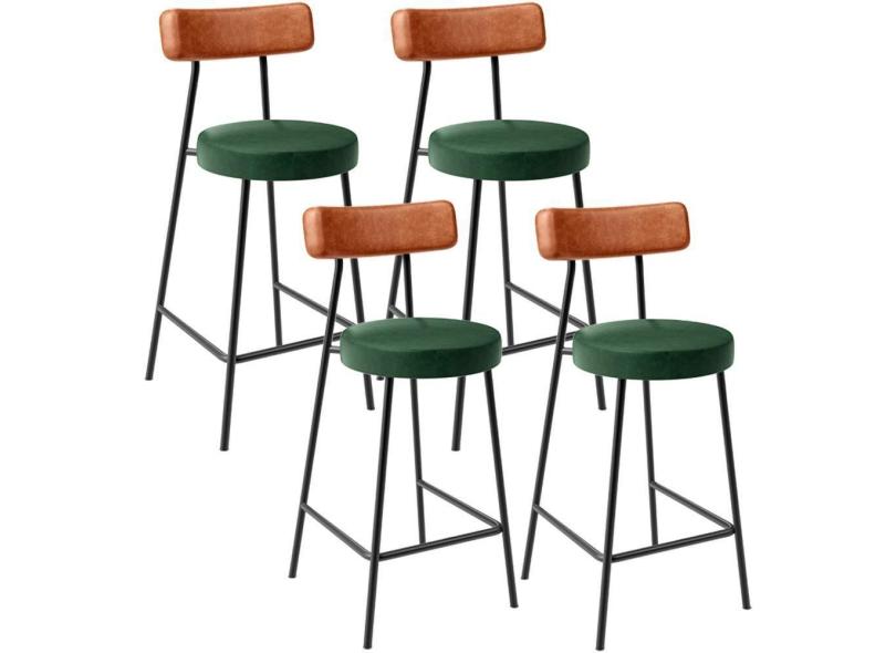 Kit 04 Banquetas Baixa Cozinha Sala Jantar Bancada Milão L02 Couríssimo Camel Verde