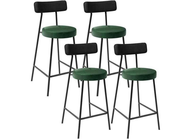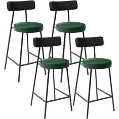 Kit 04 Banquetas Baixa Cozinha Sala Jantar Bancada Milão L02 Couríssimo Preto Verde