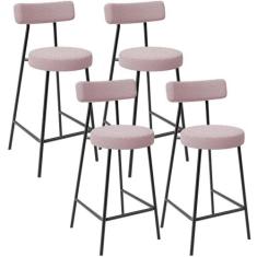 Kit 04 Banquetas Baixa Para Cozinha Sala De Jantar Bar Bancada Milão L02 Bouclê Rosê - Lyam Decor