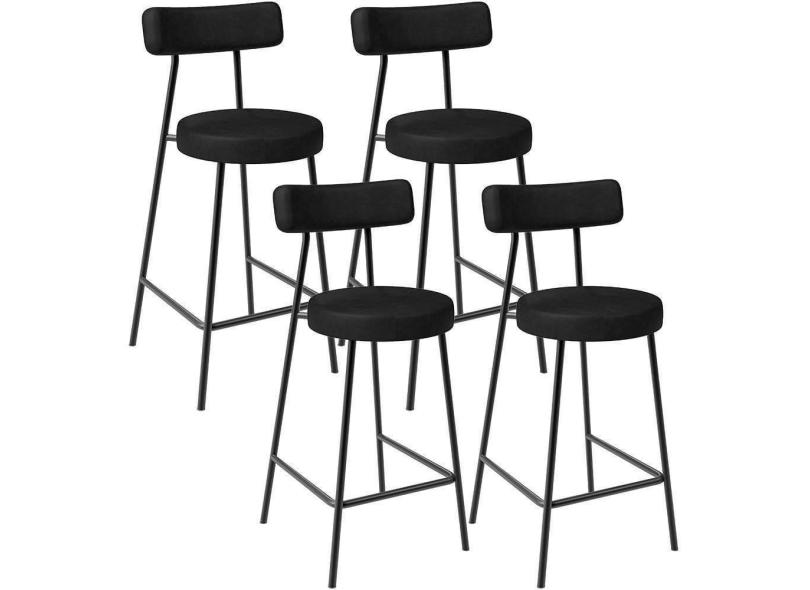 Kit 04 Banquetas Baixa Para Cozinha Sala De Jantar Bar Bancada Milão L02 Couríssimo Preto