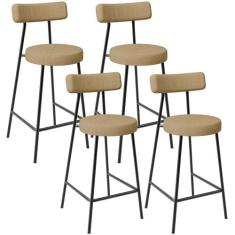 Kit 04 Banquetas Baixa Para Cozinha Sala De Jantar Bar Bancada Milão L02 Linho Bege Escuro