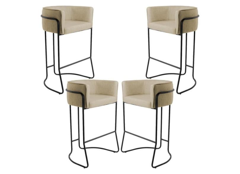 Kit 04 Banquetas Fixa Preto Linho Bege