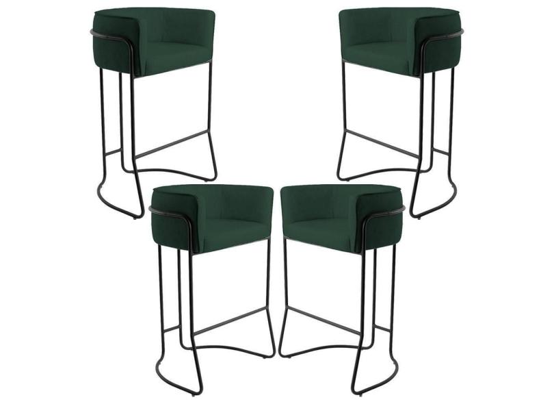 Kit 04 Banquetas Fixa Preto Linho Verde Musgo C-117