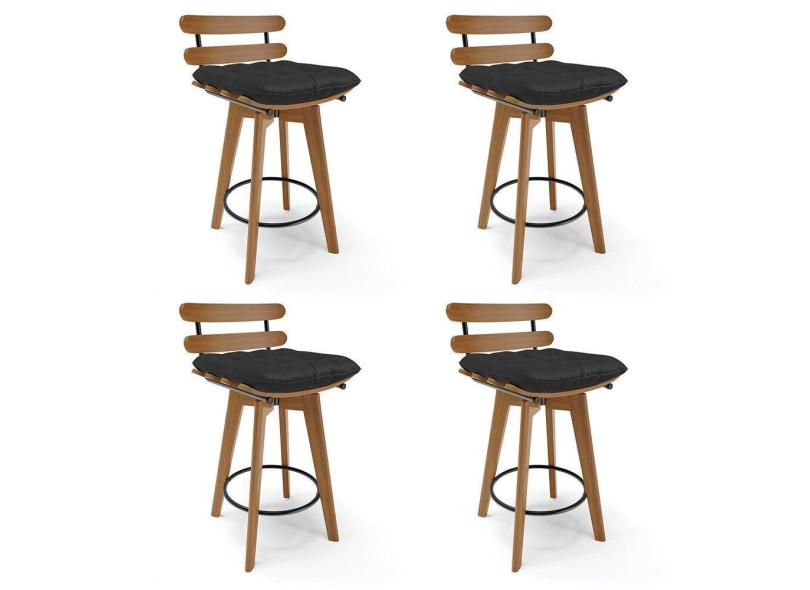 Kit 04 Banquetas Giratória Costela Preto Base Madeira