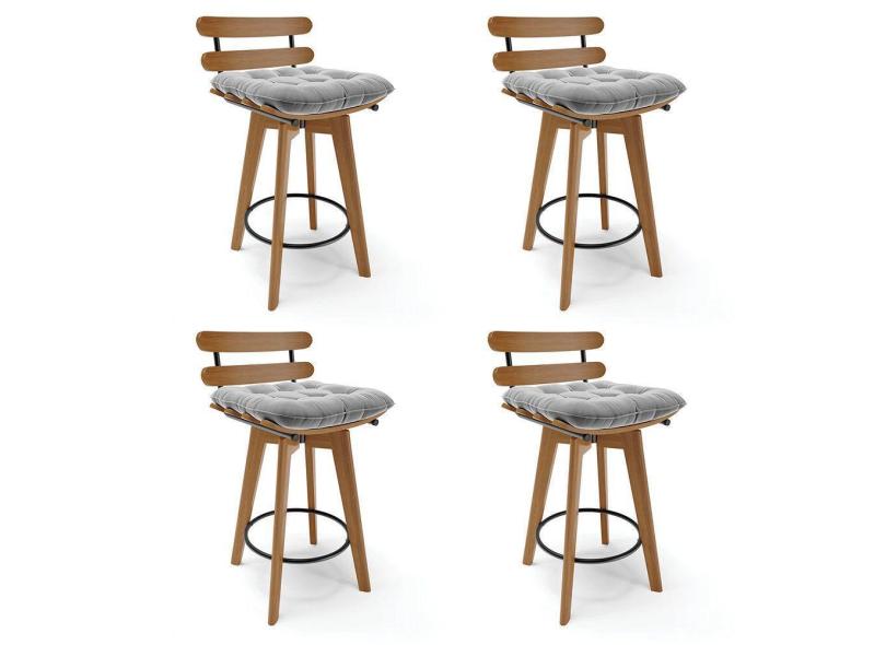 Kit 04 Banquetas Giratória Suede Cinza Base Madeira