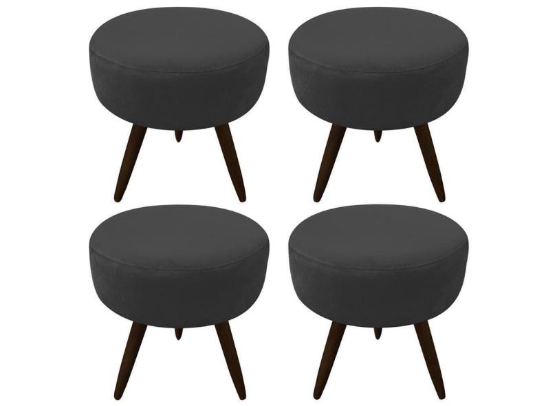 Kit 04 Puffs Banqueta Berlim Redondo Suede Preto
