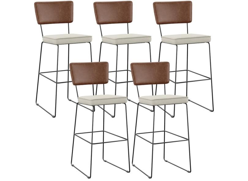 Kit 05 Banqueta Alta Cozinha Sala Jantar Allana L02 Couríssimo Marrom Linho Champagne - Lyam Decor