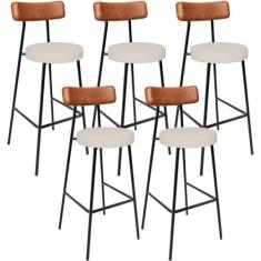 O menor preço encontrado no Brasil para Kit 05 Banquetas Alta Bar Cozinha Sala De Jantar Milão L02 Couríssimo Camel Linho Cru - Lyam Decor atualmente é R$ 2.087,18.