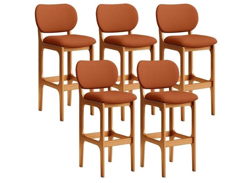 Kit 05 Banquetas Alta Bar Cozinha Sala Jantar Fixa Betta L02 Imbuia Tecido Terracota