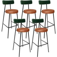 Kit 05 Banquetas Alta Bar Cozinha Sala Jantar Milão L02 Facto Verde Linho Cinza Escuro - Lyam Decor