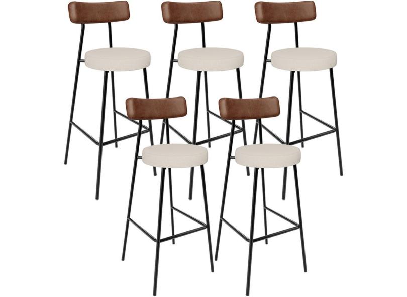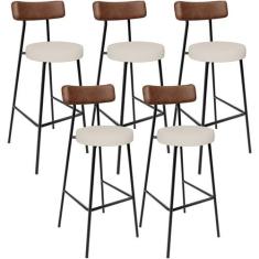 Kit 05 Banquetas Alta Cozinha Bar Sala De Jantar Milão L02 Couríssimo Marrom Linho Cru - Lyam Decor