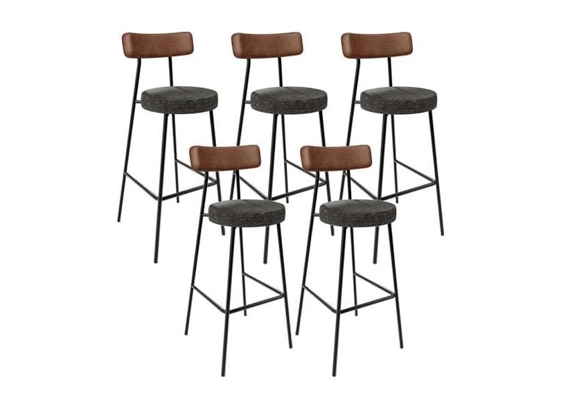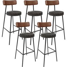 Kit 05 Banquetas Alta Cozinha Sala De Jantar Milão L02 Couríssimo Marrom Linho Chumbo - Lyam Decor