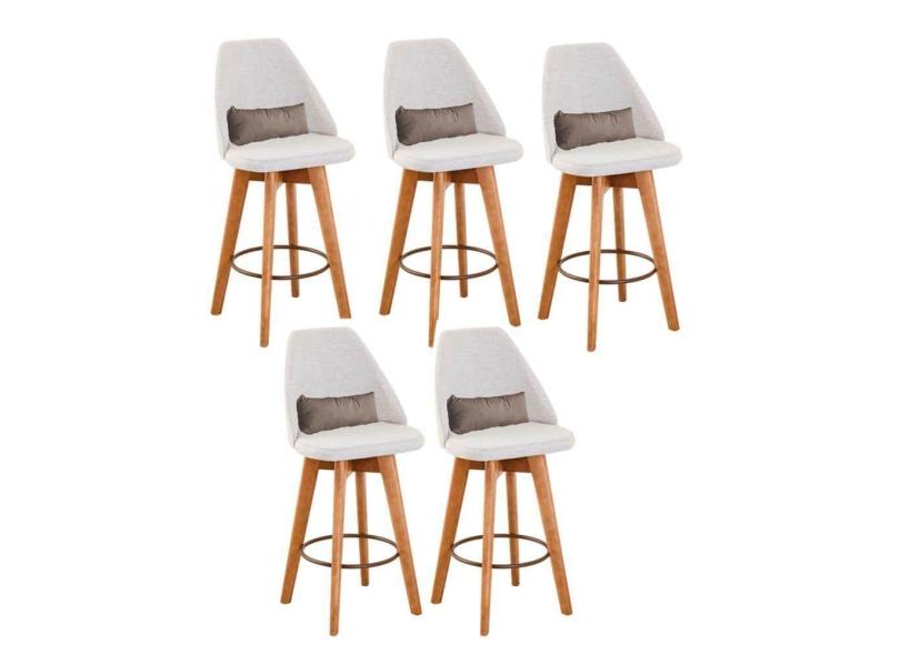 O menor preço encontrado no Brasil para Kit 05 Banquetas Alta Maya Giratória Com Encosto Linho Bege Claro e Almofada Corino Bege - Aurora Line atualmente é R$ 4.499,30.