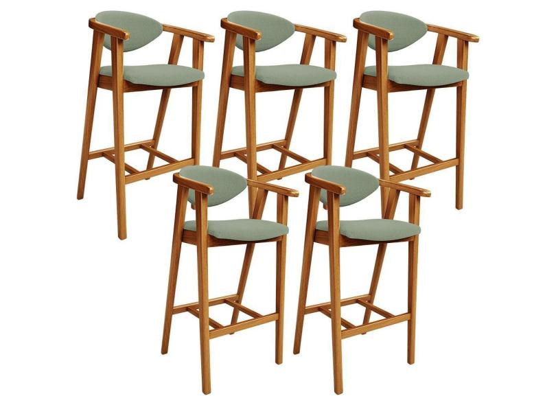 Kit 05 Banquetas Alta Para Cozinha Bancada Bar Sala De Jantar Fixa Cecília L02 Bouclê Oliva