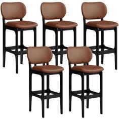 Kit 05 Banquetas Alta Para Cozinha Madeira Fixa Betta L02 Preto Couríssimo Marrom - Lyam Decor
