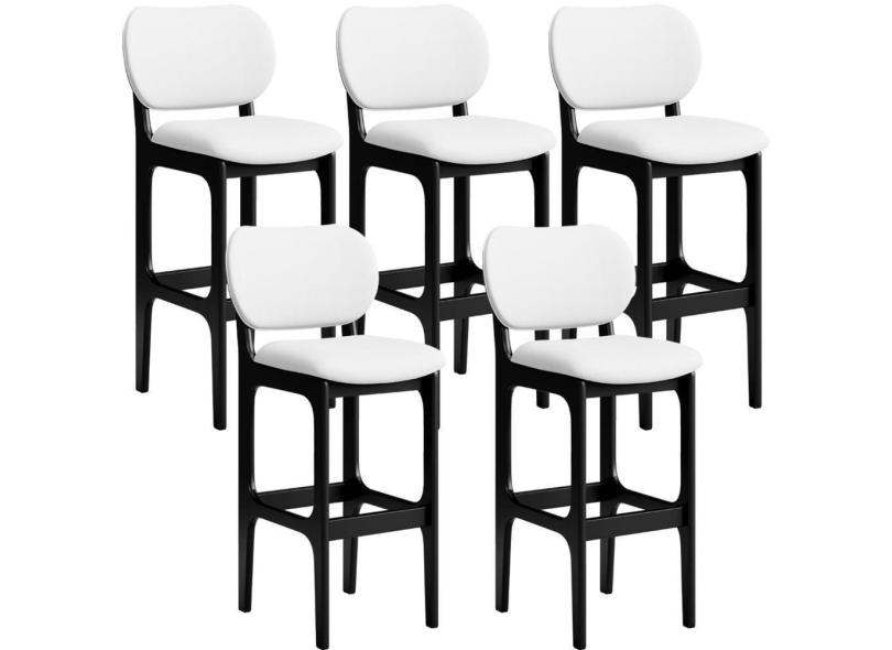 Kit 05 Banquetas Alta Para Cozinha Madeira Fixa Betta L02 Preto Facto Branco