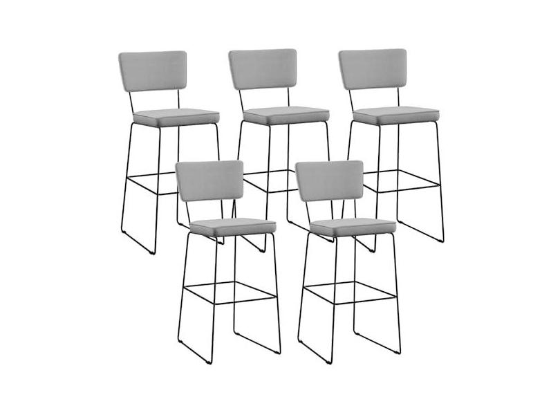 Kit 05 Banquetas Alta Para Cozinha Sala De Jantar Base Aço Fixa Allana L02 Linho Cinza - Lyam Decor