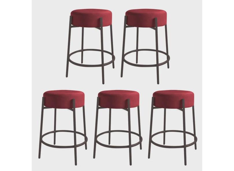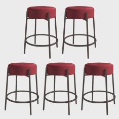Kit 05 Banquetas Alta Sintra 65cm Redonda Ferro Marrom Sintético Vermelho - Ahazzo Móveis