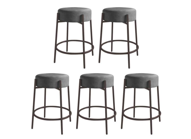 Kit 05 Banquetas Alta Sintra 65cm Redonda Ferro Marrom Suede Cinza - Ahazzo Móveis