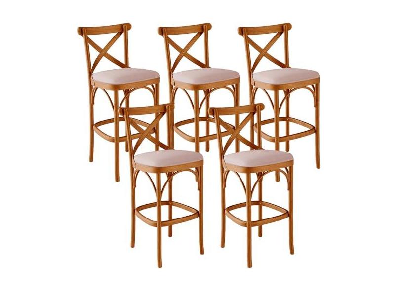 O menor preço encontrado no Brasil para Kit 05 Banquetas Altas Cozinha Bancada Bar Sala de Jantar Estofada Ávila L02 Linho Rosê - Lyam atualmente é R$ 4.228,72.