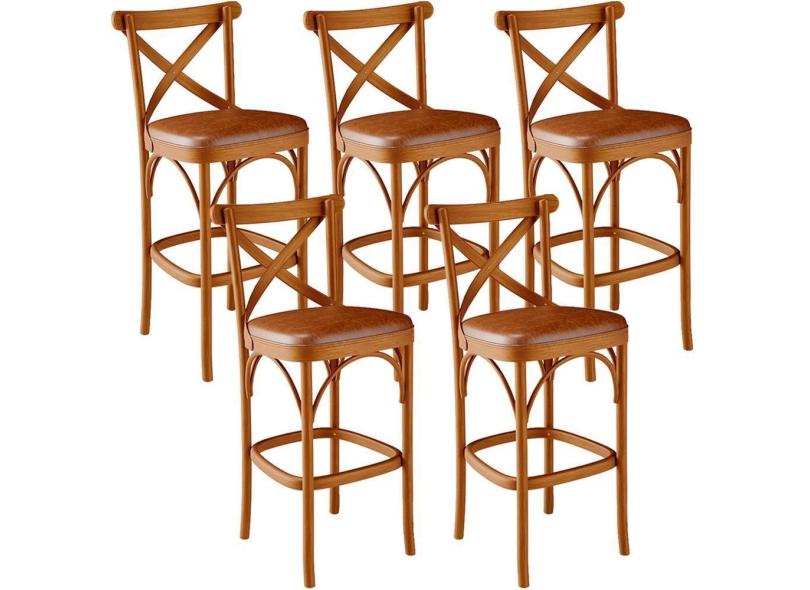 Kit 05 Banquetas Altas Cozinha Bancada Bar Sala Jantar Estofada Ávila L02 Couríssimo Camel - Lyam