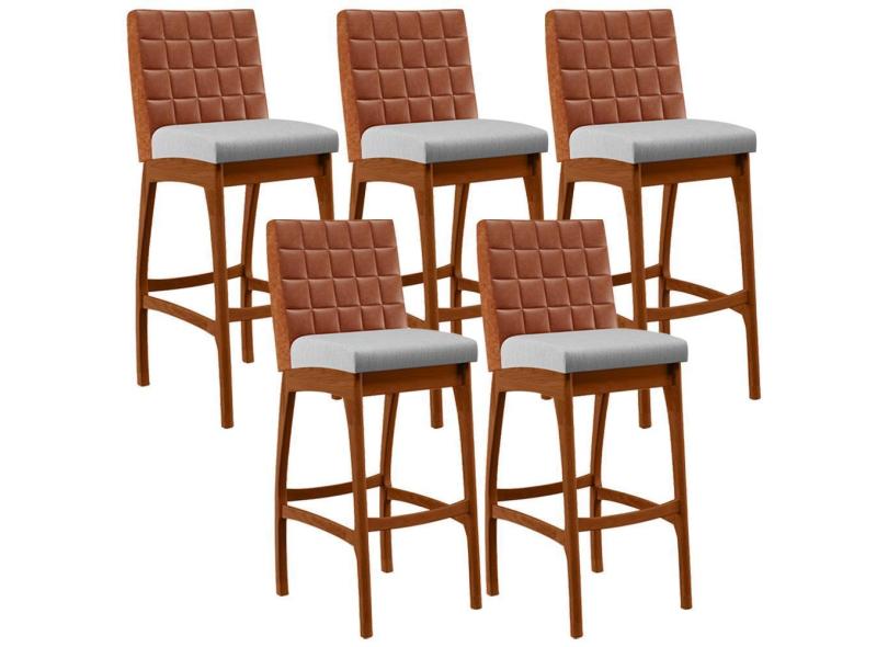 O menor preço encontrado no Brasil para Kit 05 Banquetas Altas Cozinha Sala Jantar Fixa Mila B04 Couríssimo Camel Linho Cinza - Lyam Decor atualmente é R$ 2.895,83.