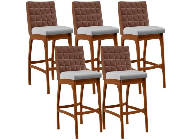 Kit 05 Banquetas Altas Mila Marrom Linho Cinza