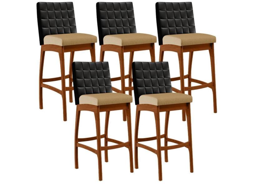 Kit 05 Banquetas Altas Mila Preto Linho Bege Escuro
