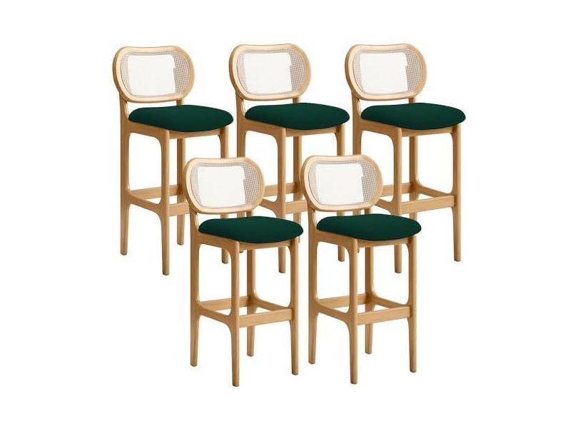 Kit 05 Banquetas Altas Para Cozinha Bancada Sala Tela Betta Fixa L02 Bouclê Verde - Lyam
