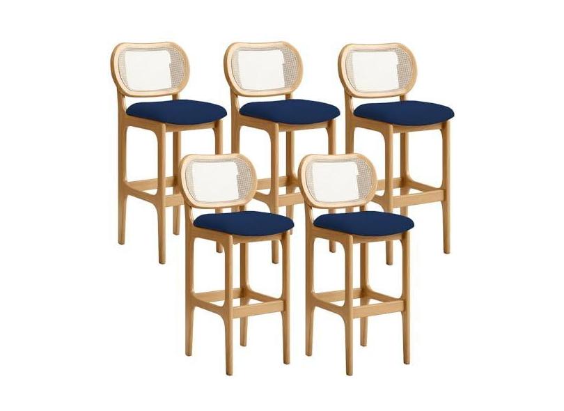 Kit 05 Banquetas Altas Para Cozinha Bancada Sala Tela Betta Fixa L02 Suede Azul Marinho - Lyam