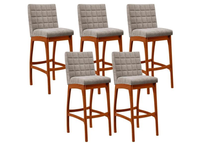 Kit 05 Banquetas Altas Para Cozinha Sala De Jantar Fixa Mila B04 Bouclê Bege - Lyam Decor