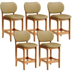 Kit 05 Banquetas Baixa Bar Cozinha E Sala De Jantar Fixa Betta L02 Imbuia Couríssimo Casco Fendi - Lyam Decor