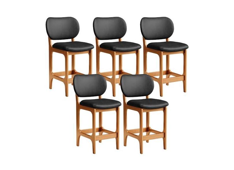 Kit 05 Banquetas Baixa Bar Cozinha E Sala De Jantar Fixa Betta L02 Imbuia Couríssimo Preto - Lyam Decor