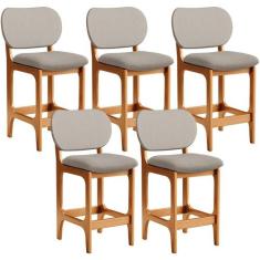 Kit 05 Banquetas Baixa Bar Cozinha E Sala De Jantar Fixa Betta L02 Imbuia Linho Bege - Lyam Decor