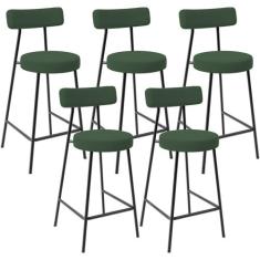 Kit 05 Banquetas Baixa Bar Cozinha Sala De Jantar Estrutura Em Aço Milão L02 Suede Verde Musgo