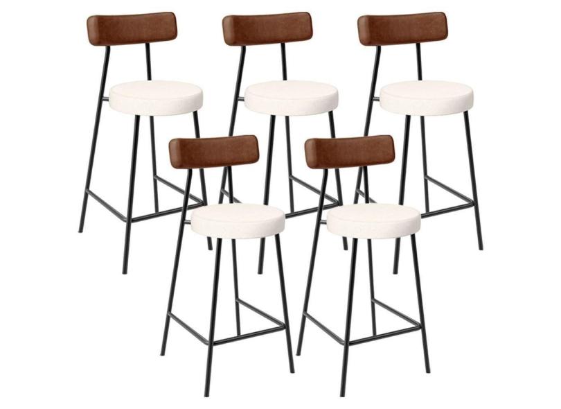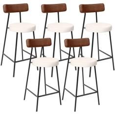 Kit 05 Banquetas Baixa Cozinha Sala De Jantar Milão L02 Couríssimo Marrom Linho Cru - Lyam Decor