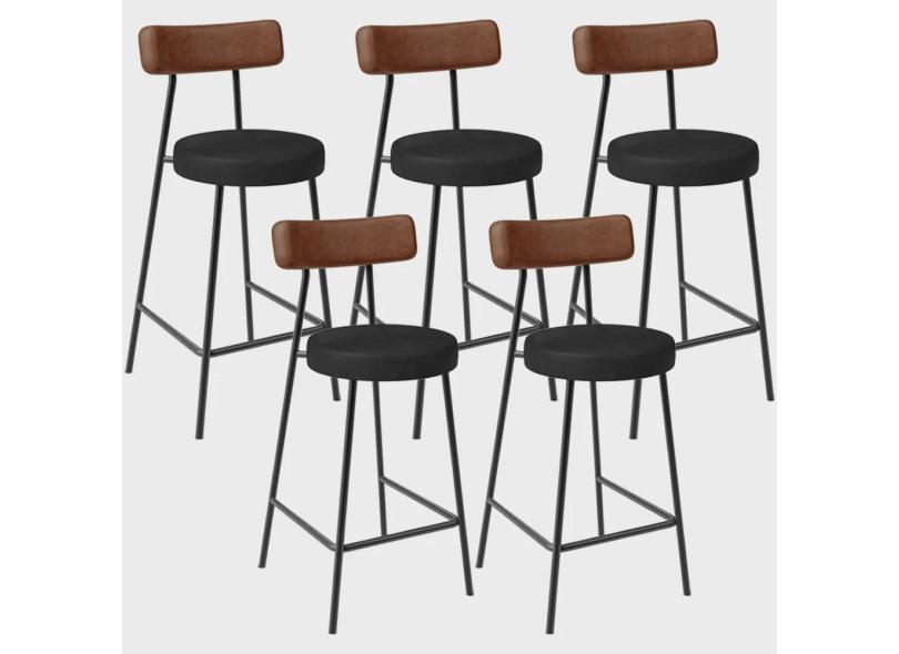 Kit 05 Banquetas Baixa Cozinha Sala Jantar Bancada Milão L02 Couríssimo Marrom Preto - Lyam Decor