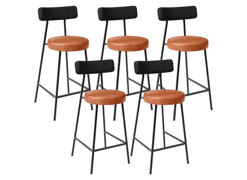 Kit 05 Banquetas Baixa Cozinha Sala Jantar Bancada Milão L02 Couríssimo Preto Camel - Lyam Decor