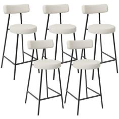 Kit 05 Banquetas Baixa Para Cozinha Sala De Jantar Bancada Milão L02 Linho Champagne