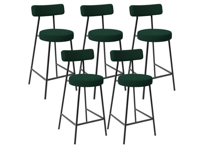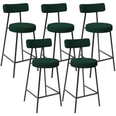 Kit 05 Banquetas Baixa Para Cozinha Sala De Jantar Bar Bancada Milão L02 Bouclê Verde