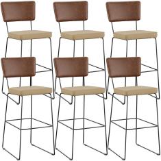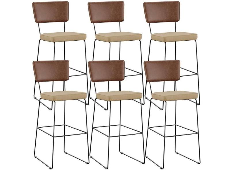 Kit 06 Banqueta Alta Cozinha Allana L02 Marrom Bege Escuro