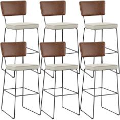 Kit 06 Banqueta Alta Cozinha Allana L02 Marrom Champagne