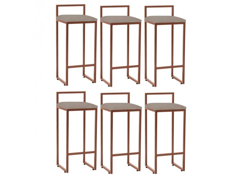 Kit 06 Banqueta Alta Lina Industrial Cozinha Bar Balcão Bistrô Ferro Bronze Corino Bege - Ahazzo Móveis