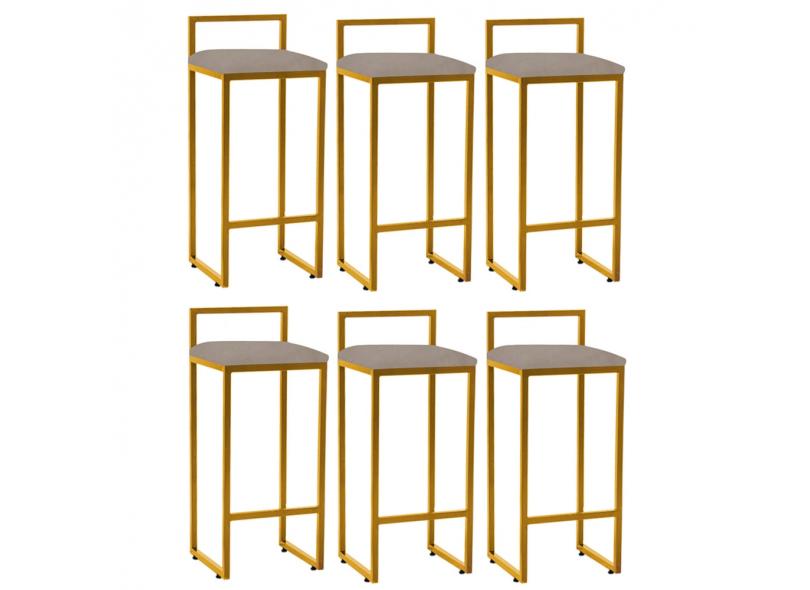 Kit 06 Banqueta Alta Lina Industrial Cozinha Bar Balcão Bistrô Ferro Suede Bege - Ahazzo Móveis