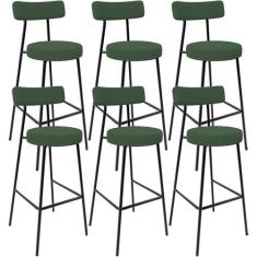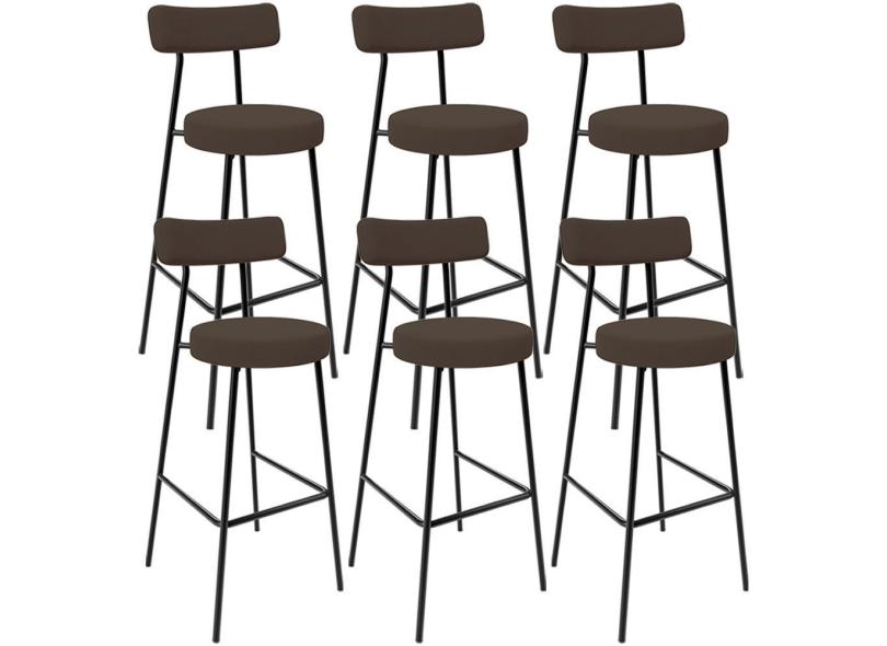 Kit 06 Banquetas Alta Bar Cozinha Sala De Jantar Em Aço Milão F01 Suede Marrom - Lyam Decor
